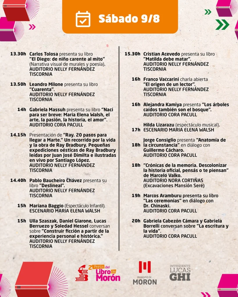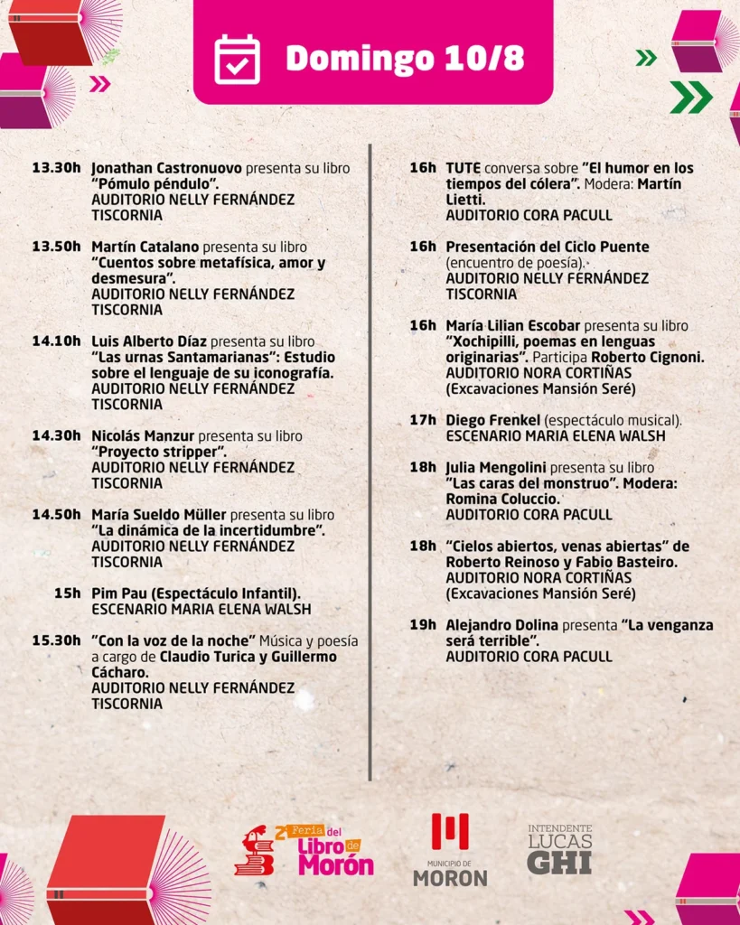 “La Feria del Libro de Morón ya se consolida como un evento destacado que promueve el encuentro, la lectura y la participación activa de la comunidad. Esta propuesta reafirma el compromiso del Estado local con el acceso a la cultura, la educación y los derechos”, informaron desde el Municipio para cerrar la invitación a participar de la iniciativa cultural.