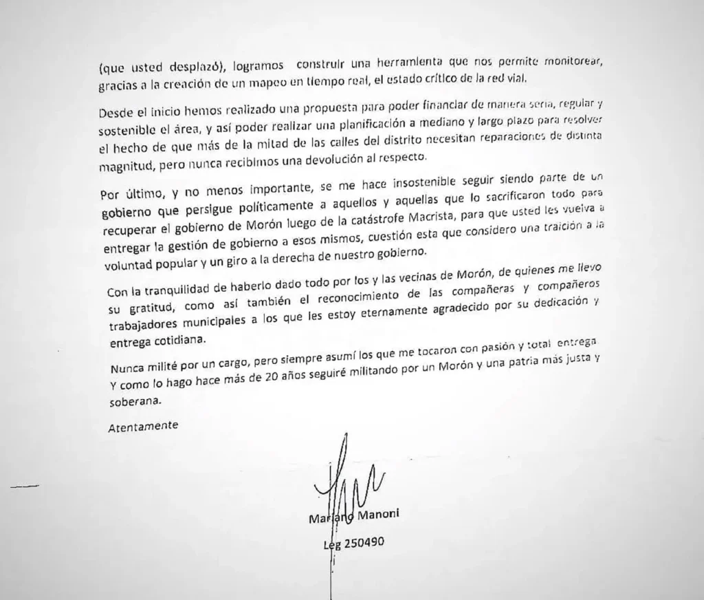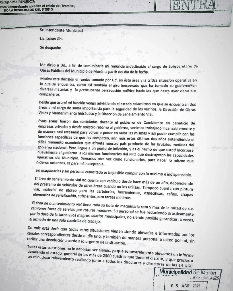 En medio de la incertidumbre pasa saber si Fuerza Patria tendrá lista única en Morón, otra novedad sacude la política en el Municipio: un funcionario de Nuevo Encuentro renunció esta mañana a su cargo para ocupar su banca en el Concejo Deliberante, donde tenía licencia.